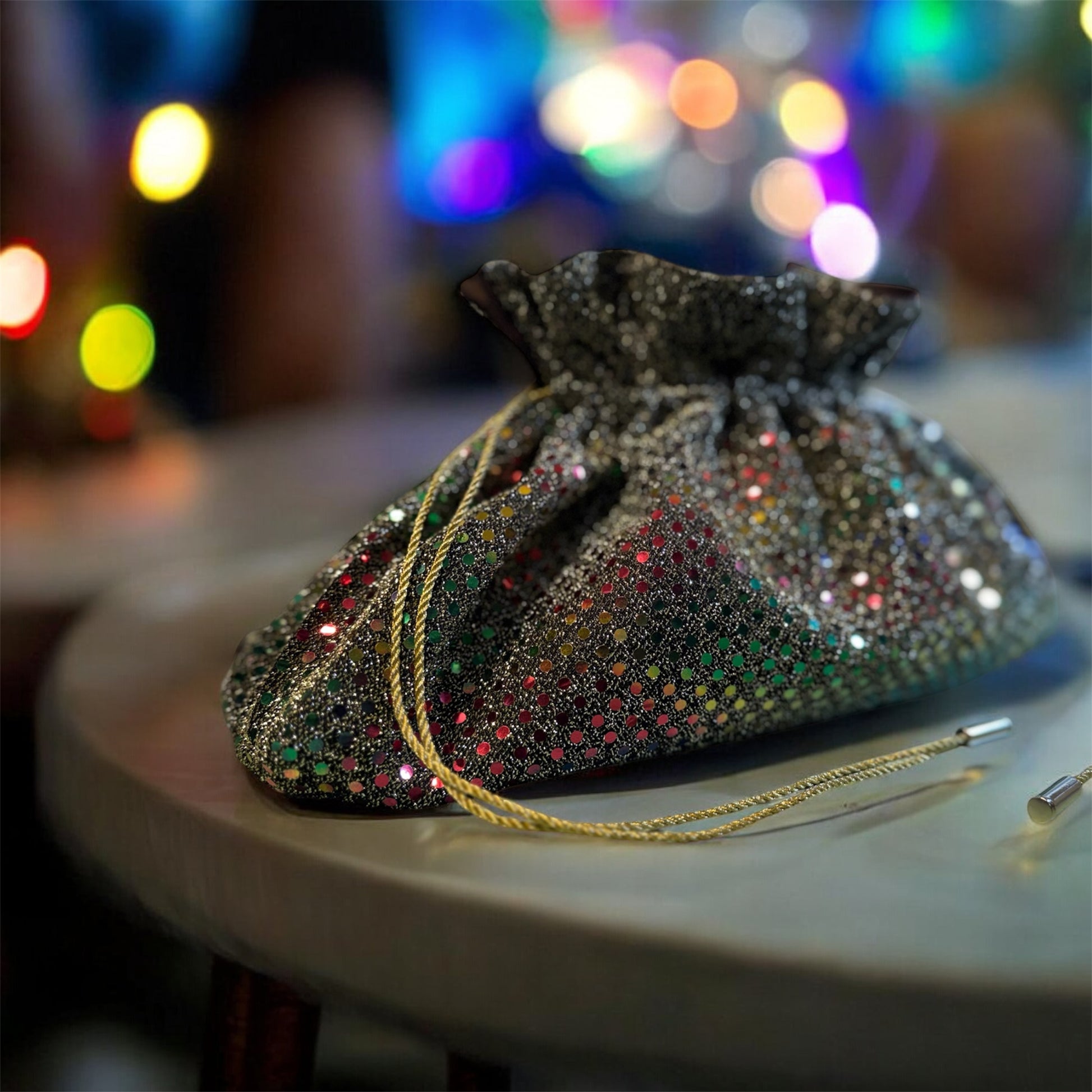 - Evening drawstring pouch bag