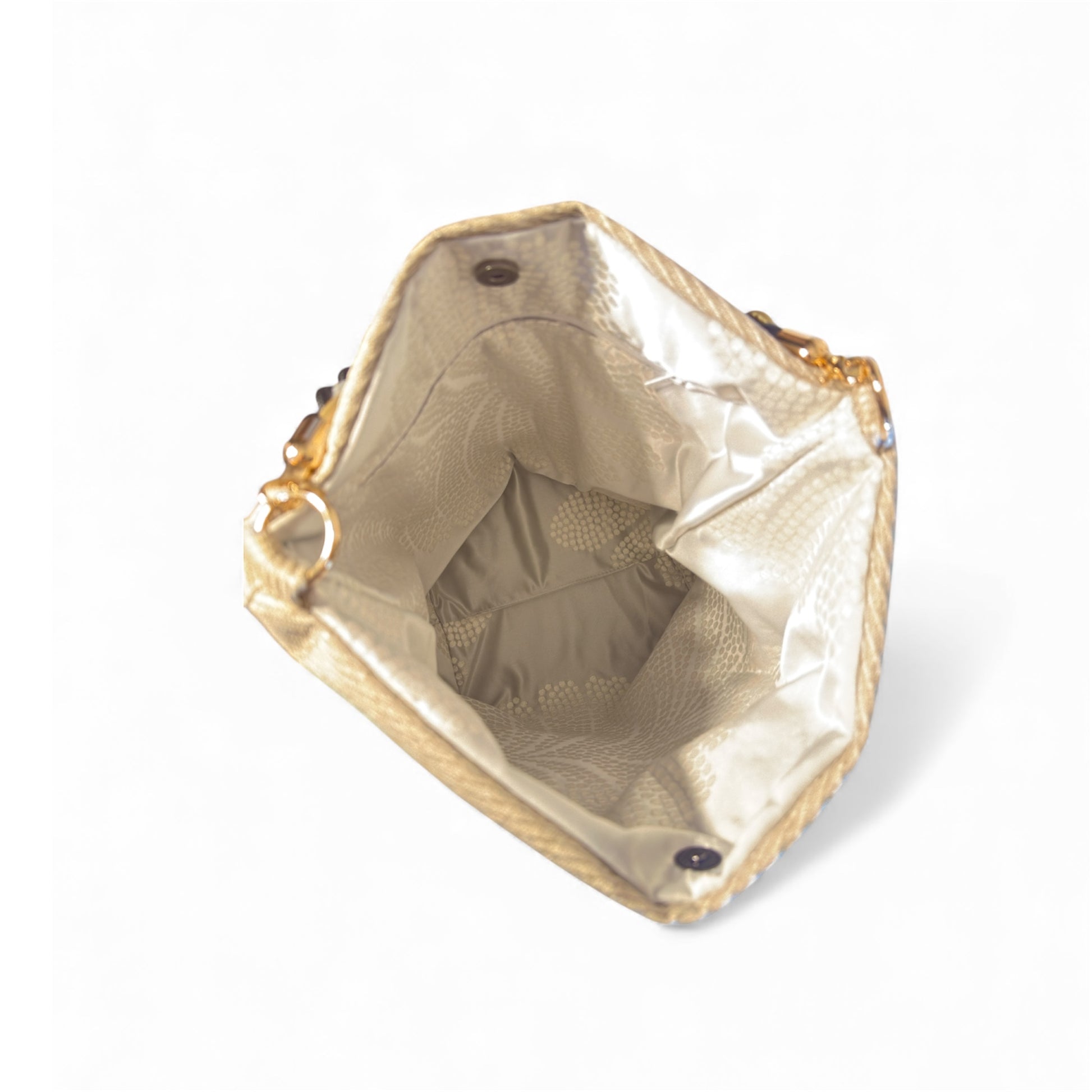 The handbag is finished with a secure snap closure, offering both ease and structure. Inside, a premium, highly durable lining provides strength and longevity while maintaining a refined interior aesthetic.